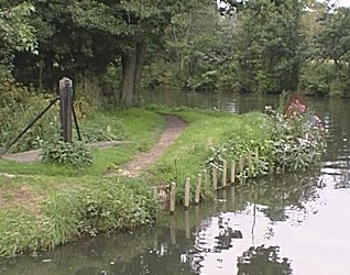 ![]() Sandy Corner still has a tow line roller for the horse drawn trip boat. River Wey and Godalming Navigations. |