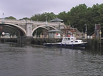 ![]() Richmond Railway Bridge and Twickenham Bridge beyond. Tidal River Thames. |