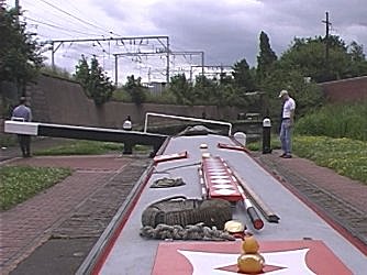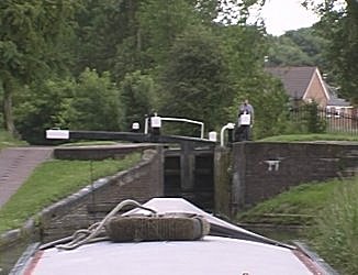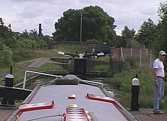 ![]() Entering the Top Lock. Peter W and Colin on lock duty. Wolverhampton 21 locks. BCN Main Line. |