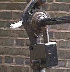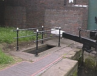 ![]() The new "water conservation key" / Leeds and Liverpool handcuff key locks to the bottom gate paddles. Bottom lock. Wolverhampton 21 locks. BCN Main Line. |