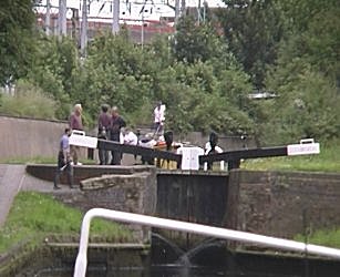 ![]() Lock No15. Peter Wright is explaining the water situation. Wolverhampton 21 locks. BCN Main Line. |