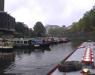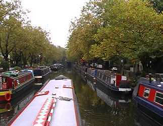 the pool, about four boats before the footbridge. The Autumn colours are just about out on the trees and it looks quite picturesque up to Maida Vale