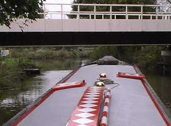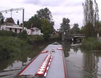 ![]() Leaving Roydon Rail Bridge. River Stort Navigation. |