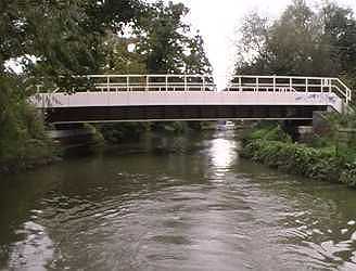 ![]() Roydon Bridge showing posts protecting curvature. River Stort Navigation. |